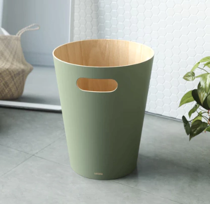 Woodrow é uma lixeira contemporânea que adiciona um toque moderno a qualquer espaço. O cesto bicolor combina um interior de madeira natural com um acabamento colorido na superfície externa.