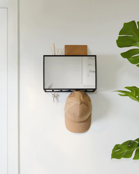 Organizador porta-chaves e trecos Cubiko. Design extremamente funcional, com boa capacidade para armazenar itens na parte superior, chaves, bolsa, além de ter um espelho para dar aquele "ver se a cara tá boa" logo antes de sair de casa!